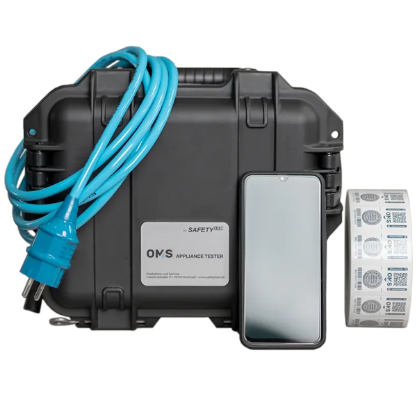 Wir stellen die Infrastruktur zur Verfügung, sodass Sie Ihre neuen oder bestehenden Geräte elektrisch sichern können. Von OMS gestellte Gerätetester ermöglichen Ihnen, die Prüfung der Elektrogeräte selbst durchzuführen, z. B. vor Inbetriebnahme und nach Instandsetzung. Mit Hilfe unserer Prüf-App führen wir Sie sicher und verständlich durch den Prüfprozess. Dank der Schnittstelle zu Ihrem Profil im OMS Kundenportal sind Sie und Ihre Prüfdaten immer auf dem neuesten Stand. Die Prüfetiketten, die Sie von OMS erhalten, ermöglichen durch ihre Robustheit eine lebenslange Betriebsmittelidentifikation.