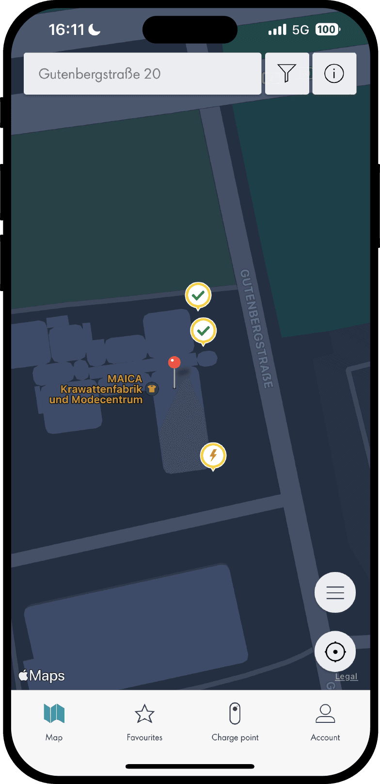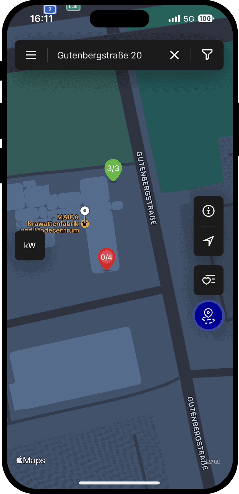 Ladepunkte am Streckenverlauf prüfen über App